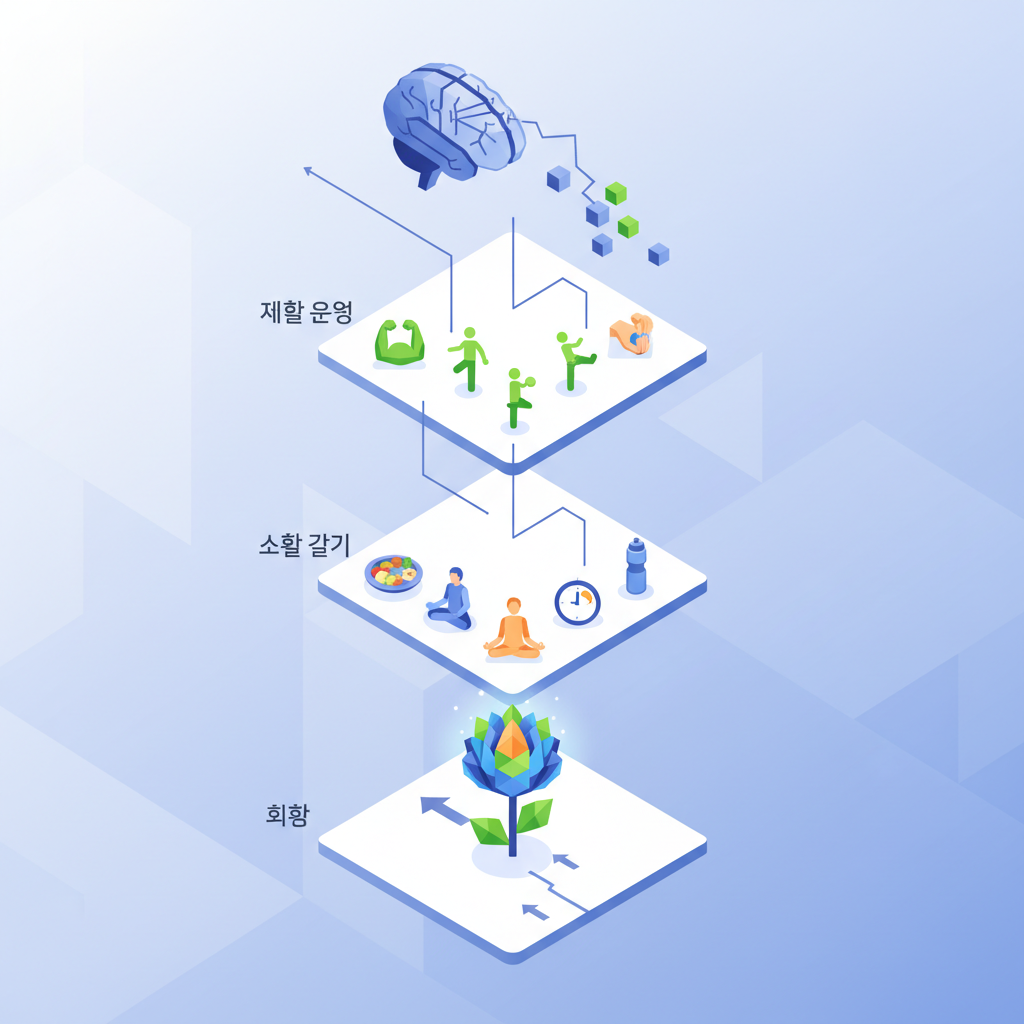 재활 운동만큼이나 중요한 것이 바로 꾸준한 생활 관리입니다. 건강한 식단, 규칙적인 생활 습관, 스트레스 관리 등은 뇌경색 후유증 회복을 돕고 재발을 예방하는 데 필수적입니다.